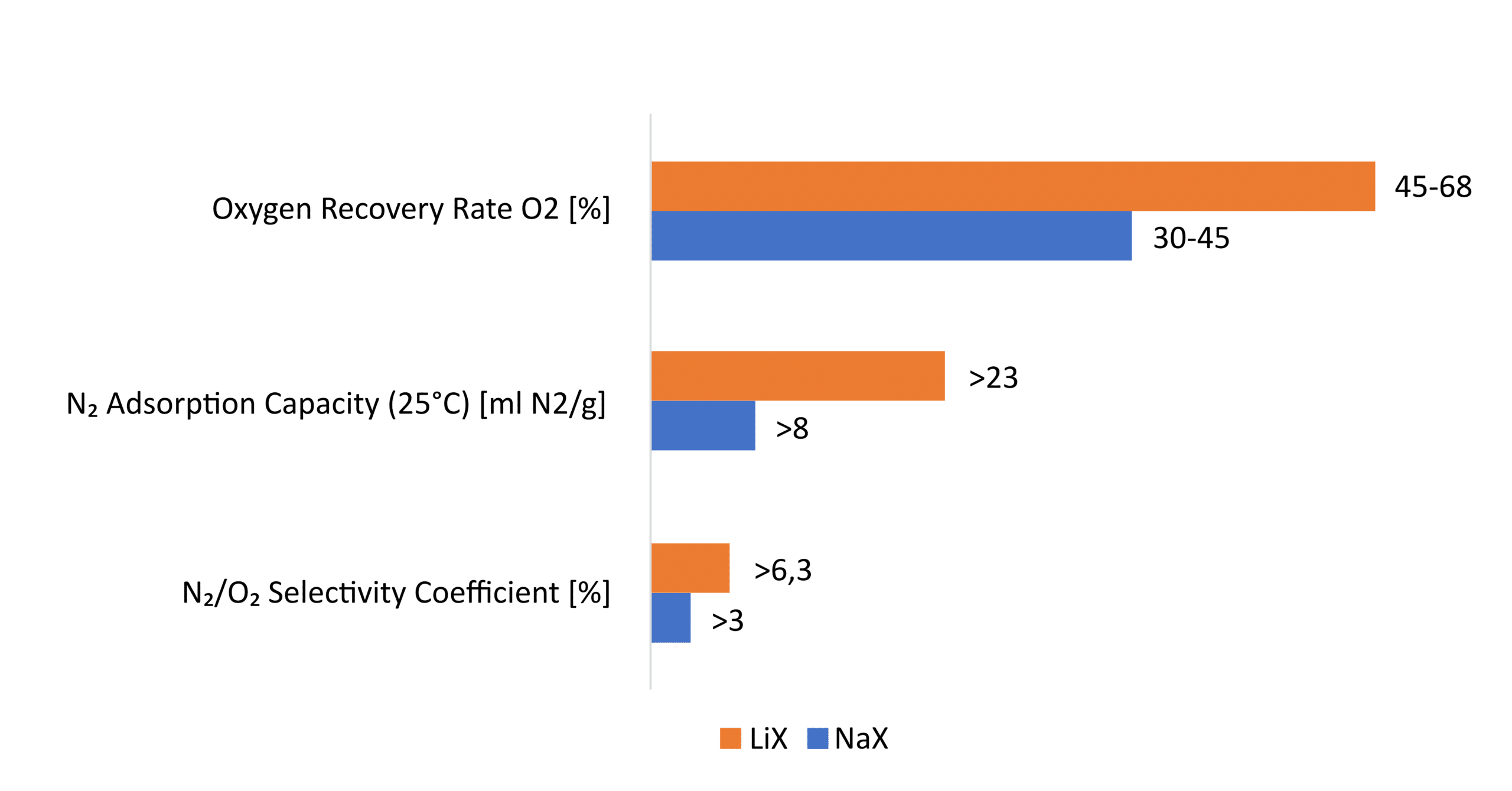 - LiX (lithium zeolite type X) – characterized by higher selectivity for nitrogen and shorter cycle times. This enables greater oxygen efficiency at lower energy consumption, making them the preferred choice in modern, compact medical concentrators.